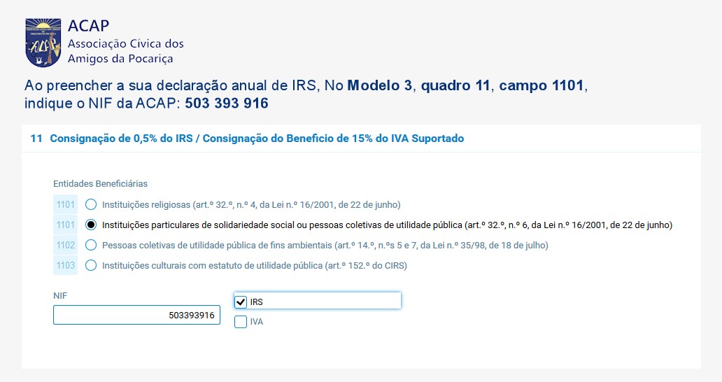 ACAP – Assoc. Cívica dos Amigos da Pocariça (NIF 503393916)